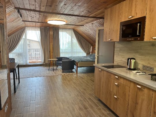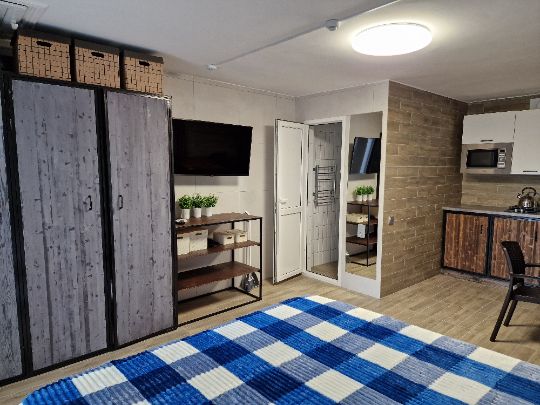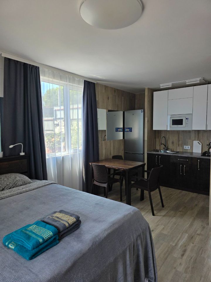 Комфортная,просторная и уютная студия для 4-х персон 22 квадратных метра с кухонной зоной и со всем необходимым, с дополнительной двуспальной кроватью